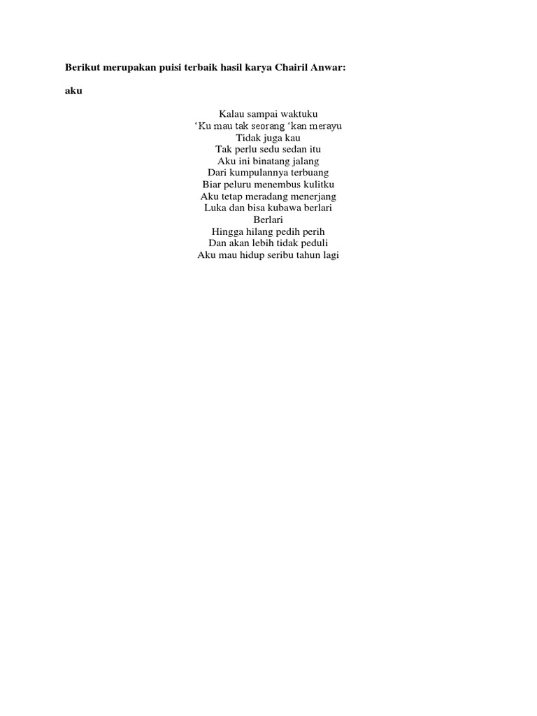 untuk "Puisi Sumanjaya : Puisi Aku Chairil Anwar Pdf - Koleksi Puisi : Semoga tetap sehat dan dalam lindungan allah yah."